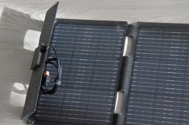 Eine kleine tragbare und effiziente Solarstromquelle bietet die Mini-Solartasche von EcoFlow mit integrierten USB-C-Anschluss am Solar Controler, der auch einen Solar-XT60i-Ausgang für die River-Serie bereithält. Das kompakte Design des EcoFlow 45w-Solarpanel machen es zusammen mit dem geringen Gewicht zum perfekten Begleiter im Business-Bereich. Das Modul im A4-Format ist quasi nicht größer als eine Schreibmappe mit leichter faltbarer Konstruktion und hoher Umwandlungseffizienz. Durch die TOPCon-Solartechnologie erreicht das Solarpanel eine Umwandlungsrate von bis zu 25 %, sie ist IP68-wetterfest und langlebig, das robuste PCB-Glasfaser sowie die ETFE-Beschichtung schützen das Solar-Panel vor Witterungseinflüssen. Die Aufstellung ist flexibel, mit vorgestanzten Ösen und Haken kann es auch aufgehängt werden.